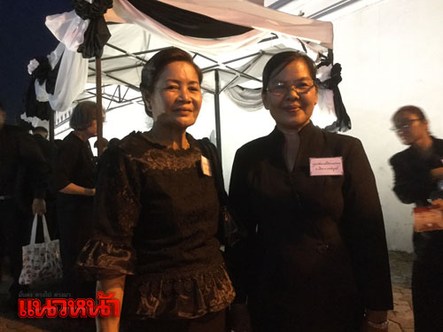 ด้านนางจันทร์สม มณีจักร อายุ 68 ปี ชาว ต.แม่สาว อ.แม่อาย จ.เชียงใหม่ กล่าวว่า ตนและเพื่อนบ้านกลุ่ม"ธรรมะสู่บ้าน" จำนวน 22 คนได้นั่งรถไฟฟรี 16 ชั่วโมงมาจาก จ.เชียงใหม่ ตั้งใจมากราบถวายสักการะพระบรมศพ ซึ่งครั้งแรกขึ้นกราบสักการะไปเมื่อวันที่ 2 พ.ย.59 ฝนตกหนักมาก หลังจากนั้นได้พากันนั่งรถไฟฟรีไป อ.หัวหิน เพราะอยากไปเห็นบ้านของพ่อหลวง และก่อนกลับเชียงใหม่ จึงแวะมากราบถวายสักการะพระบรมศพอีกสักครั้ง โดยวันนี้ ได้เข้าเป็นคณะแรกตอนตี 5 รู้สึกซาบซึ้งดีใจมาก และจะขอน้อมนำคำสอนของพระองค์โดยเฉพาะเรื่องความประหยัดมาใช้ในชีวิตประจำวัน และจะอบรมสั่งสอนลูกหลานให้เป็นคนดี ตามคำสอนของพระองค์