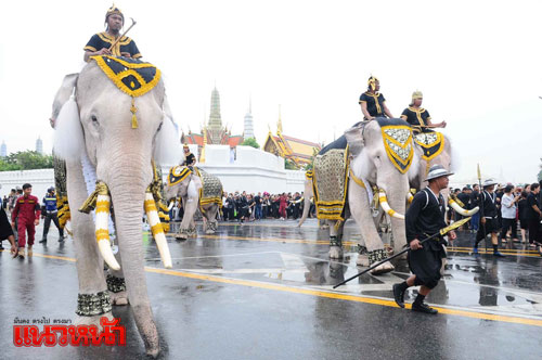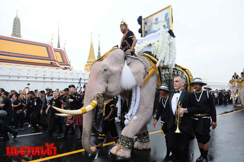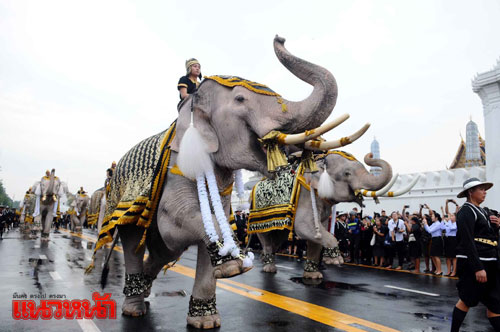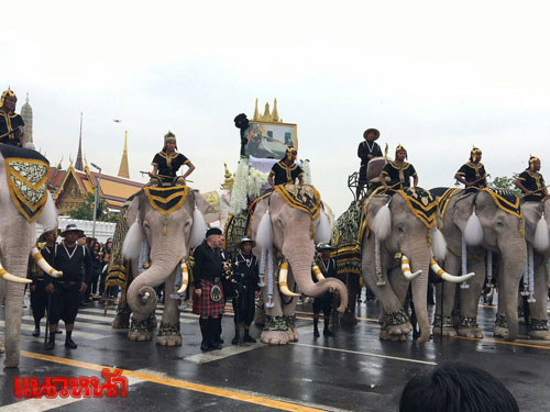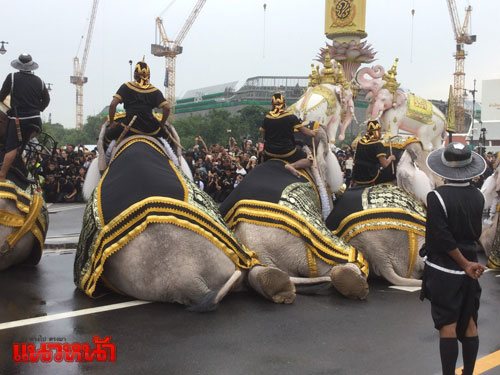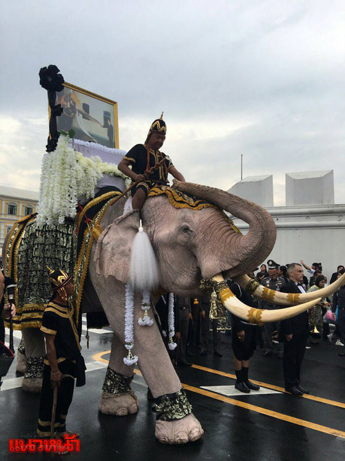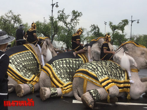 8 พ.ย.59 ผู้สื่อข่าวรายงานว่า เมื่อเวลา 09.50 น. บริเวณด้านหน้าพระบรมมหาราชวัง ฝั่งกระทรวงกลาโหม นายลายทองเหรียญ มีพันธ์ เจ้าของวังช้างอยุธยา แล เพนียด และประธานมูลนิธิคชบาล นำช้างจากวังช้างอยุธยา แล เพนียด จ.พระนครศรีอยุธยา จำนวน 11 เชือก แต่งเครื่องคชาภรณ์สีดำ พร้อมกับผู้แทนคชสารทั่วแผ่นดินกว่า 200 คน เดินทางมาถวายสักการะพระบรมศพ พระบาทสมเด็จพระปรมินทรมหาภูมิพลอดุลยเดช
