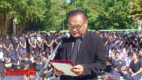 ดร.สุรินทร์ เนียมสุวรรณ ผอ.รร. กล่าวคำถวายอาลัย ต่อหน้าพระบรมฉายาลักษณ์ ได้เพียง 1 นาที ก็ถึงกับหลั่งน้ำตาและหยุดนิ่งเป็นเวลาร่วม 2 นาที ก่อนจะใช้มือปาดน้ำตาและกล่าวถวายอาลัยต่อไปด้วยเสียงสะอื้น ท่ามกลางความเงียบสนิทของทุกคนในสนาม บางคนถึงกับยืนเช็ดน้ำตาตลอดพิธี ท่ามกลางแสงแดดและผู้เข้าร่วมพิธีแต่งกายด้วยชุดดำ