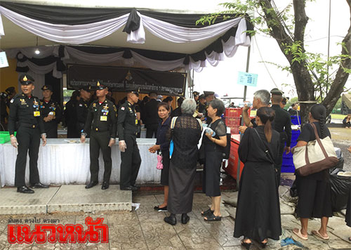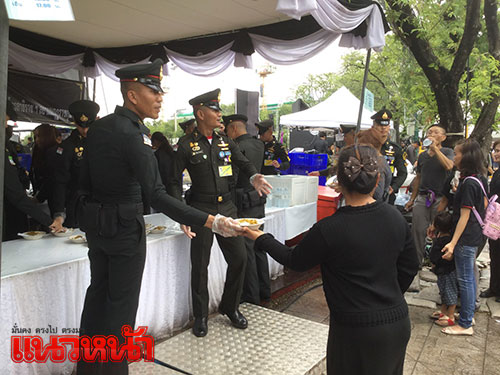8 พ.ย.59 ที่เต็นท์หน่วยทหารมหาดเล็กรักษาพระองค์ ในสมเด็จพระบรมโอรสาธิราชฯ สยามมกุฎราชกุมาร ซึ่งตั้งอยู่บริเวณท้องสนามหลวงฝั่งทิศใต้ ฝั่งตรงข้ามประตูมณีนพรัตน์ พระบรมมหาราชวัง สมเด็จพระบรมโอรสาธิราชฯ สยามมกุฎราชกุมาร ทรงห่วงใยพสกนิกรที่เดินทางมาถวายสักการะพระบรมศพ พระบาทสมเด็จพระปรมินทรมหาภูมิพลอดุลยเดช ที่พระที่นั่งดุสิตมหาปราสาท ในพระบรมมหาราชวัง จึงทรงพระกรุณาโปรดเกล้าฯ ให้หน่วยทหารมหาดเล็กราชวัลลภรักษาพระองค์ ในสมเด็จพระบรมโอรสาธิราชฯ สยามมกุฎราชกุมาร นำอาหาร ขนม ผลไม้ และน้ำดื่มพระราชทานมาแจกจ่ายให้ประชาชน