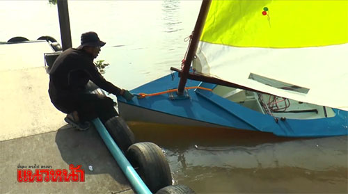9 พ.ย.59 ผู้สื่อข่าวรายงานว่า ที่ท่าเรือร้านอาหาร HAVEN 69 ริมแม่น้ำเจ้าพระยา ต.ไทรม้า อ.เมือง จ.นนทบุรี กลุ่มครูฝึกเรือใบทีมชาติไทย ประกอบด้วย จ.อ.ธรรมศักดิ์ มีอยู่สามเสน พ.จ.อ.สุธี พูลพัฒน์ และ จ.อ.ชาลี อิทธิ นำเรือใบซุปเปอร์มด จำนวน 3 ลำ แล่นใบในแม่น้ำเจ้าพระยา มุ่งหน้าสู่พระบรมมหาราชวัง เพื่อแสดงความอาลัยพระบาทสมเด็จพระปรมินทรมหาภูมิพลอดุลยเดช หน้าพระบรมโกศ ณ พระที่นั่งดุสิตมหาปราสาท พระบรมมหาราชวัง รวมระยะประมาณ 17 กิโลเมตร ใช้เวลาเดินทาง 4 ชม.