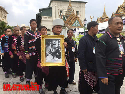 9 พ.ย.59 ราษฎรบนพื้นที่สูงจาก 9 ชนเผ่า จาก 20 จังหวัด ประกอบด้วย กะเหรี่ยง เมี่ยน ลาหู่ถิ่น อาข่า ม้ง ขมุ ลีซอ และรวมทั้งสิ้น 999 คน เข้าถวายสักการะพระบรมศพ เบื้องหน้าพระบรมโกศ พระบาทสมเด็จพระปรมินทรมหาภูมิพลอดุลยเดช ณ พระที่นั่งดุสิตมหาปราสาท ภายในพระบรมมหาราชวัง และในจำนวนนี้เป็นบุคคลในภาพแห่งความทรงจำ 9 เหตุการณ์ และผู้ที่เคยร่วมทำพิธีผูกขวัญ เดินทางเข้าถวายสักการะพระบรมศพ พระบาทสมเด็จพระปรมินทรมหาภูมิพลอดุลยเดช เบื้องหน้าพระบรมโกศ ณ พระที่นั่งดุสิตมหาปราสาท ในพระบรมมหาราชวัง ภายใต้กิจกรรม “999 ดวงใจ ร่วมอาลัยพ่อหลวง”