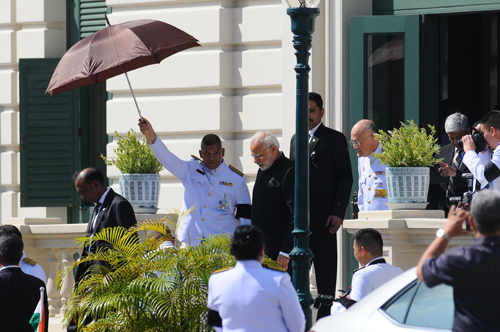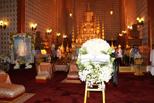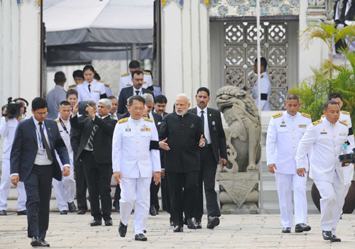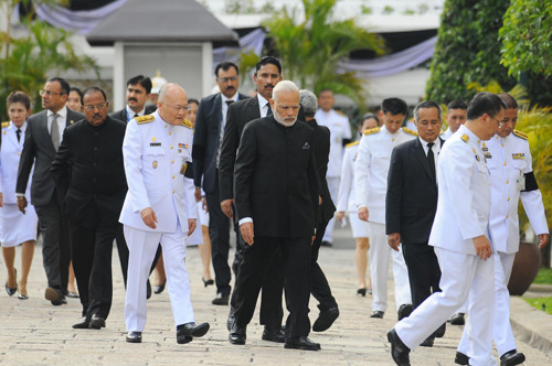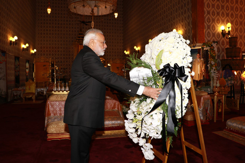 10 พ.ย.59 เมื่อเวลา 13.45 น.ที่ผ่านมา นายนเรนทร โมที (Mr.Narendra Modi) นายกรัฐมนตรีแห่งสาธารณรัฐอินเดีย เดินทางมาวางพวงมาลาถวายสักการะพระบรมศพพระบาทสมเด็จพระปรมินทรมหาภูมิพลอดุลยเดช ณ พระที่นั่งดุสิตมหาประสาท ในพระบรมมหาราชวัง จากนั้นลงนามถวายความอาลัย ณ อาคารสำนักราชเลขาธิการ