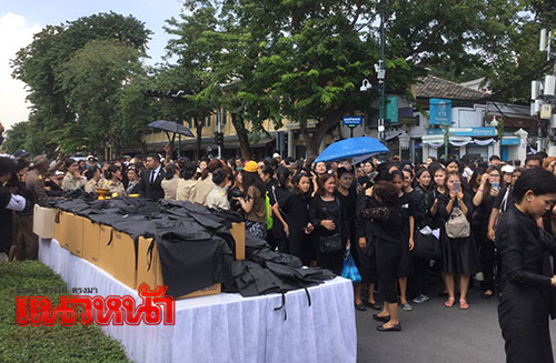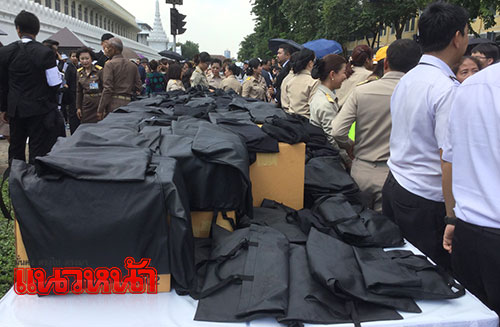 นอกจากนี้ยังมีหน่วยงานต่าง นำขนมจีนน้ำยา กล้วยแขกทอด แอปเปิ้ล มะม่วง ลูกพลับ ไอศรีมกระทิสด จำนวน 2 ถัง เยลลี่สตอเบอรรี่ 2,000 ถ้วย และเต้าหู้นมสด 2,000 ถ้วย และน้ำแร่ธรรมชาติจากจ.สุราษฎร์ธานี 3,000 ขวด มาร่วมแจกจ่ายด้วย นอกจากนี้ ยังมีผู้นำข้าวกระยาทิพย์ จากวัดระฆังฯมาทูลเกล้าฯถวายและทรงประทานให้นำไปแจกจ่ายประชาชนเพื่อเป็นสิริมงคล