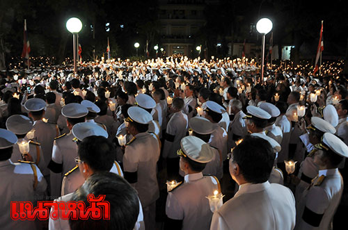 13 พ.ย. 59 เวลา17.00 น. พล.ร.อ.ณะ อารีนิจ ผู้บัญชาการทหารเรือ และศาสตราจารย์ ดอกเตอร์ นายแพทย์ ประสิทธิ์ วัฒนาภา คณบดีคณะแพทยศาสตร์ศิริราชพยาบาล พร้อมนายทหารชั้นผู้ใหญ่ของกองทัพเรือ ประกอบด้วย พลเรือเอก นริส ประทุมสุวรรณ ผู้ช่วยผู้บัญชาการทหารเรือ และ พลเรือเอก ลือชัย รุดดิษฐ์ เสนาธิการทหารเรือ ได้นำกำลังพลกองทัพเรือ จำนวน 389 นาย แยกเป็น นายทหารชั้นผู้ใหญ่ของกองทัพเรือ จำนวน 89 นาย และกำลังพลจากฐานทัพเรือกรุงเทพ จำนวน 300 นาย ตลอดจนบุคลากร จากคณะแพทยศาสตร์ศิริราชพยาบาล ร่วมในกิจกรรมน้อมดวงใจชาวศิริราช ตามรอยพระราชปณิธานพระภูมิพล ซึ่ง กองทัพเรือ ในฐานะหน่วยงานที่รับผิดชอบในการจัดกองอำนวยการร่วมถวายความปลอดภัยกองทัพเรือ ณ โรงพยาบาลศิริราช และ คณะแพทยศาสตร์ศิริราชพยาบาล ได้ร่วมกันจัดขึ้นเพื่อ ถวายความอาลัย และเทิดพระเกียรติพระบาทสมเด็จ พระปรมินทรมหาภูมิพลอดุลยเดช ณ ลานพระราชานุสาวรีย์ สมเด็จพระมหิตลาธิเบศร อดุลยเดชวิกรม พระบรมราชชนก ภายในโรงพยาบาลศิริราช เขตบางกอกน้อย กรุงเทพมหานคร