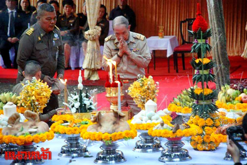 ทั้งนี้ ในการประกอบพิธีตามตามโบราณราชประเพณีมีประชาชนเข้าร่วมงานจำนวนมาก โดยมีเจ้าหน้าที่เก็บกู้วัตถุระเบิดจากค่ายนเรศวรตรวจสอบความปลอดภัยก่อนเริ่มพิธี รวมถึงเจ้าหน้าที่ได้ประกาศห้ามบันทึกภาพในบริเวณมณฑลพิธีเพื่อนำไปเผยแพร่ในสังคมโซเชียล