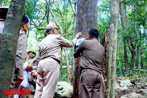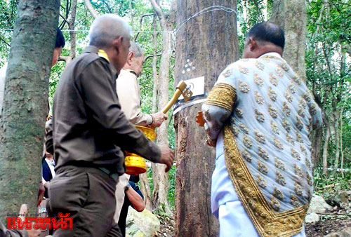 14 พ.ย.59 เมื่อเวลา 11.00 น. ที่อุทยานแห่งชาติกุยบุรี หมู่ 9 ต.หาดขาม อ.กุยบุรี จ.ประจวบคีรีขันธ์ เจ้าหน้าที่กองพิธีการ สำนักพระราชวัง ได้ทำการชี้แจงข้อมูลกับสื่อมวลชนจำนวนมากก่อนจะเริ่มพิธีบวงสรวงตัดไม้จันทน์หอม โดยมีนายวุฒิ สุมิตร รองราชเลขาธิการ สำนักพระราชวังเป็นประธานในพิธีประกอบพิธีบวงสรวงขอขมาในการตัดไม้จันทน์หอม เพื่อจัดสร้างพระโกศทรง พระบรมศพเหนือพระจิตกาธานบนพระเมรุมาศ ในพิธีพระราชทานเพลิงพระบรมศพพระบาทสมเด็จพระปรมินทรมหาภูมิพลอดุลยเดช โดยสำนักช่างสิบหมู่ กรมศิลปากรเป็นผู้ดำเนินการจัดสร้าง