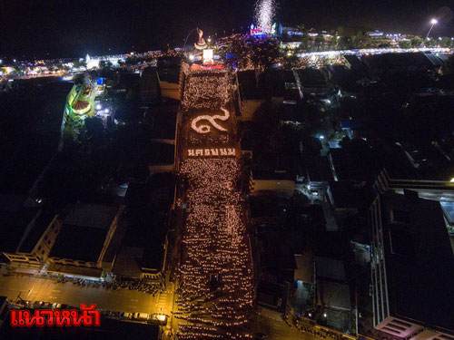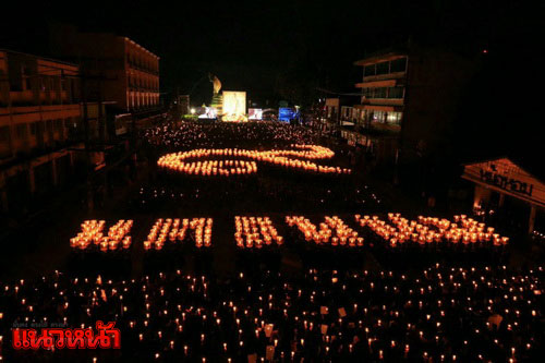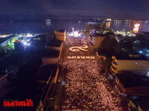 15 พ.ย.59 ผู้สื่อข่าวรายงานข่าว บรรยากาศการจัดงาน "ร้อยดวงใจ ถวายอาลัย พ่อหลวง" ที่จังหวัดนครพนม บริเวณแลนด์มาร์ค พญาศรีสัตตนาคราช” ริมฝั่งแม่น้ำโขง เมื่อค่ำคืนวันที่ 14 พ.ย.59 ที่ผ่านมา โดยมี นายสมชาย วิทย์ดำรงค์ ผู้ว่าราชการจังหวัดนครพนม เป็นประธาน นำข้าราชการ พ่อค้า ประชาชน ทหาร ตำรวจ องค์กรต่างๆ ร่วมงาน หลายหมื่นคน แต่งกายชุดไว้ทุกข์สีดำ พร้อมเทียนคนละเล่ม
