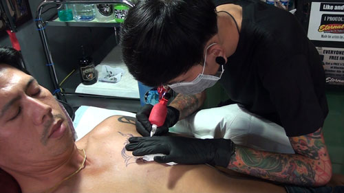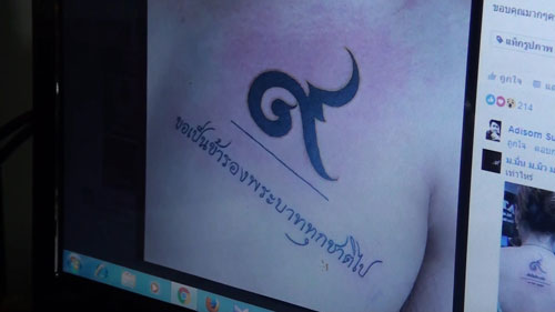 นายจิรายุ ศรีนาคสกุล อายุ 25 ปี เจ้าของร้านสัก Jay Tattoo จากความสูญเสียที่คนไทยทุกคนต้องตกอยู่ในห่วงเวลาแห่งความเศร้าโศก ทำให้มีลูกค้าหลายๆคน มาใช้บริการสักโดยของสักเป็น สัญลักษณ์เลข 9 อันเป็นเลขมงคลของคนไทยทั่วทั้งประเทศ เป็นจำนวนมาก จนคิวสักนั้นเต็มเกือบแทบทุกวัน โดยทุกคนที่มาสักลายบอกว่า อยากจะให้ร่างกายส่วนใดส่วนหนึ่งเป็นเครื่องจดจำ จารึกว่า ครั้งหนึ่ง เราเกิดมาในรัชสมัยของพ่อหลวงรัชกาลที่ 9 อันเป็นที่รักและศรัทธาเหนือสิ่งอื่นใด โดยลูกค้าที่มาสักจะมีทั้งนำแบบมาเอง และบางส่วนก็ให้ทางร้านออกแบบให้และมีทั้งที่ใส่ข้อความแสดงความอาลัยต่างๆเช่น "ขอเป็นข้ารองบาททุกชาติไป" บางคนก็เป็นเลข 9 แต่ด้านในเป็นรูปพ่อหลวง ส่วนลายที่ตนเองรู้สึกประทับใจที่สุดที่มีลูกค้านำแบบมา คือ เลข 9 อยู่ตรงกลางแผนที่ประเทศไทย เพราะลายสักนี้ให้ความรู้สึกถึงความเป็นหนึ่งเดียวกันของคนไทยทั้งประเทศ เพราะมีศูนย์รวมใจพระองค์เดียวกันคือในหลวง รัชกาลที่ 9