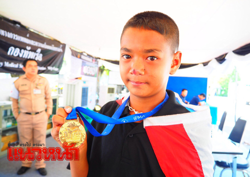 ขณะที่ ด.ช.อัครชัย เจ้าของเหรียญทองในการแข่งขันกีฬามวลไทยชิงแชมป์โลก จากเวที IFMA กล่าวเพียงสั้นๆ ว่า อยากทดแทนบุญคุณในหลวง ร.9 ที่ทรงทำเพื่อคนไทยและราษฏรให้อยู่ดีกินดี โดยตนจะใช้ความเพียรตามหลักทศพิธราชธรรมของพระองค์ท่านในการเล่นกีฬาต่อยมวย โดยมีฝันอยากเป็นตัวแทนประเทศไทยไปแข่งขันกีฬาโอลิมปิก