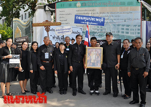 18 พ.ย.59 เมื่อเวลา 13.15 น. สิบตรีจาง แซ่เล่า อาสาสมัครคุมประพฤติจังหวัดเพชรบูรณ์ สาขาหล่มสัก ราษฎรชาวไทยภูเขา บ้านทับเก อำเภอหล่มเก่า จังหวัดเพชรบูรณ์ ซึ่งสำนึกในพระมหากรุณาธิคุณ พระบาทสมเด็จพระปรมินทรมหาภูมิพลอดุลยเดช ได้เดินเท้าจากจังหวัดเพชรบูรณ์ มุ่งสู่พระบรมมหาราชวังเพื่อถวายบังคมพระบรมศพ โดยมีนายมณฑล แก้วเก่า หัวหน้าผู้ตรวจราชการกรมคุมประพฤติ พร้อมด้วยผู้บริหารตลอดจนเจ้าหน้าที่กรมคุมประพฤติ ให้การต้อนรับและให้กำลังใจ บริเวณประตู 1 ฝั่งพระแม่ธรณี ศาลฎีกา (เดิม)