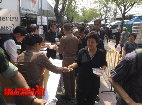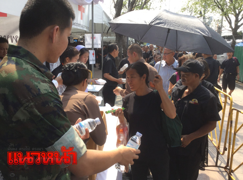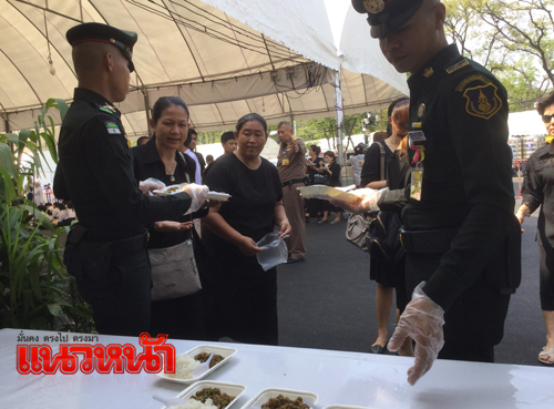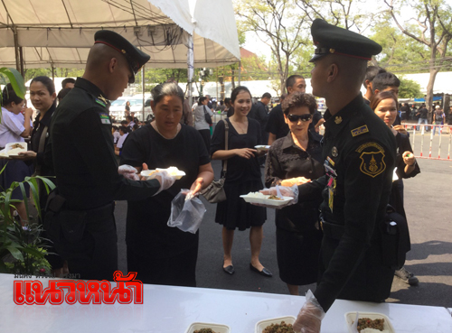 23 พ.ย.59 ที่เต็นท์หน่วยทหารมหาดเล็กรักษาพระองค์ ในสมเด็จพระบรมโอรสาธิราชฯ สยามมกุฎราชกุมาร ซึ่งตั้งอยู่บริเวณท้องสนามหลวงฝั่งทิศเหนือ เยื้องกับพิพิธภัณฑสถานแห่งชาติ โดยรวมอยู่ภายในศูนย์อาหารบริการประชาชนโดย สมเด็จพระบรมโอรสาธิราชฯ สยามมกุฎราชกุมาร ทรงห่วงใยพสกนิกรที่เดินทางมาแสดงความอาลัย จึงทรงพระกรุณาโปรดเกล้าฯ ให้หน่วยทหารมหาดเล็กราชวัลลภรักษาพระองค์ ในสมเด็จพระบรมโอรสาธิราชฯ สยามมกุฎราชกุมาร นำอาหาร ขนม ของว่าง และน้ำดื่ม พระราชทานมาแจกจ่ายให้ประชาชน