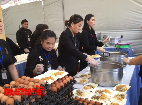 ขณะเดียวกัน สมเด็จพระเจ้าลูกเธอ เจ้าฟ้าจุฬาภรณวลัยลักษณ์ อัครราชกุมารี ทรงพระราชทานอาหารมื้อกลางวัน ซึ่งแจกจ่ายให้ประชานในเวลา 12.00 น.สำหรับเมนูวันนี้เป็น ข้าวน่องไก่อบซอส จำนวน 500 กล่อง พร้อมขนมและน้ำดื่ม