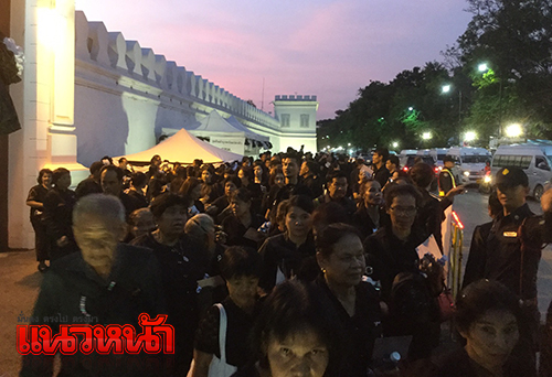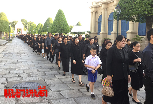 ที่เดินทางมาเข้าคิวรออย่างเนือแน่นตั้งแต่เช้ามืดเพื่อเข้าเข้าสักการะถวายความอาลัยต่อพระบาทสมเด็จพระปรมินทรมหาภูมิพลอดุลยเดช กษัตริย์ผู้ทรงเปี่ยมล้นไปด้วยพระเมตตาต่อพสกนิการชาวไทยทุกคน