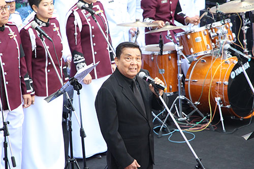 ทั้งนี้ นอกจากการแปรอักษรแล้ว พล.ต.ท.ศานิตย์ ได้นำข้าราชการตำรวจทั้งหมดถวายสัตย์ปฏิญาณ และร่วมร้องเพลงเทิดพระเกียรติ โดยได้รับเกียรติจาก นายสันติ ลุนเผ่ ศิลปินแห่งชาติ มาเป็นนักร้องนำกิตติมศักดิ์ด้วย สำหรับบทเพลงที่นำมาขับร้อง คือ เพลงสรรเสริญพระบารมี เพลงความฝันอันสูงสุด และเพลงต้นไม้ของพ่อ บรรเลงเพลงโดยวงดุริยางค์ สำนักงานตำรวจแห่งชาติ