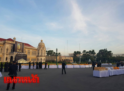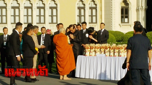 1 ธ.ค.59 ผู้สื่อข่าวรายงานว่า เมื่อเวลา 07.00 น.ที่ทำเนียบรัฐบาล พล.อ.ประยุทธ์ จันทร์โอชา นายกรัฐมนตรี และหัวหน้าคณะรักษาความสงบแห่งชาติ (คสช.) พร้อมด้วย รศ.นราพร จันทร์โอชา ภริยา เป็นประธานในพิธีเจริญพระพุทธมนต์และตักบาตร ในการบำเพ็ญกุศลเนื่องในพระราชพิธีทรงบำเพ็ญพระราชกุศลปัญญาสมวาร (50 วัน) ซึ่งมีคณะรัฐมนตรี (ครม.) และข้าราชการของทำเนียบฯ ร่วมทำบุญตักบาตรกันอย่างพร้อมเพียง