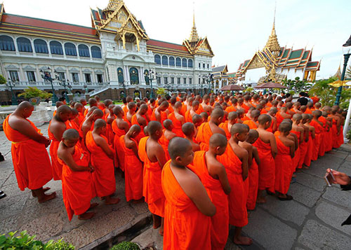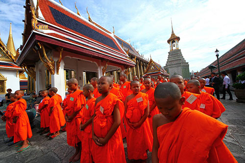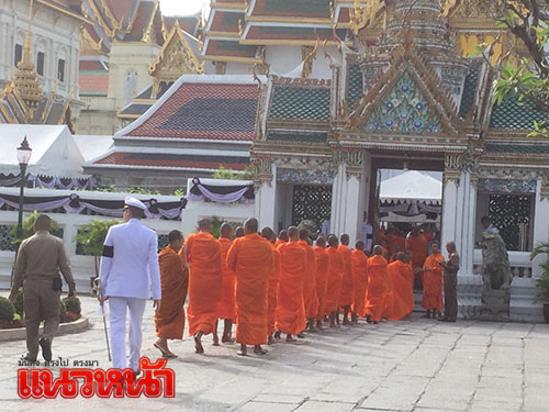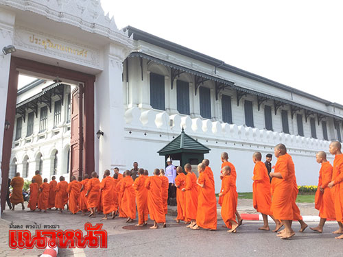 3 ธ.ค.59 เมื่อเวลา 09.00 น. คณะสามเณรโครงการ "พม.บวชเพื่อพ่อหลวง" ของกระทรวงการพัฒนาสังคมและความมั่นคงของมนุษย์ จำนวน 561 รูป พร้อมด้วยพระพี่เลี้ยง 77 รูป เดินทางมาเจริญจิตภาวนาปลงธรรมสังเวชพระบรมศพ พระบาทสมเด็จพระปรมินทรมหาภูมิพลอดุลยเดช ณ พระที่นั่งดุสิตมหาปราสาท ในพระบรมมหาราชวัง จำนวน 254 รูป และที่บริเวณลานพระอุโบสถ วัดพระศรีรัตนศาสดาราม จำนวน 384 รูป ทั้งนี้ เพื่อให้เด็กและเยาวชนได้แสดงตนเป็นพุทธมามกะ สร้างองค์ความรู้ด้าน คุณธรรมจริยธรรม และน้อมรำลึกและแสดงความจงรักภักดีต่อพระมหากรุณาธิคุณ