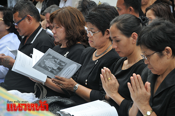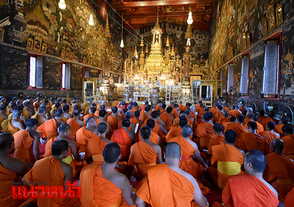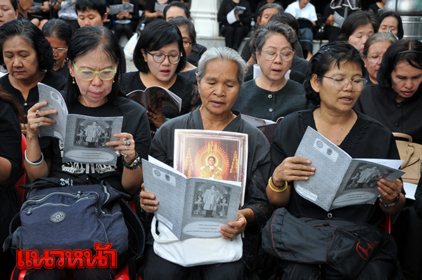สำหรับบรรยากาศโดยรอบพระอุโบสถวัดพระศรีรัตนศาสดาราม คลาคล่ำไปด้วยเหล่าพสกนิกรจากทั่วทุกสารทิศ ที่เดินทางมาร่วมในพิธีอย่างเนืองแน่น ทางสำนักงานพระพุทธศาสนาแห่งชาติ ได้นำหนังสือบทสวดพระพุทธมนต์ถวายพระราชกุศล จำนวน 2,000 เล่ม พร้อมภาพพระบรมฉายาลักษณ์อีก 2,000 แผ่น มาแจกจ่ายให้พสกนิกร