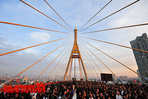 5 ธ.ค. 59 เมื่อเวลา 06.00 น. ที่สะพานภูมิพล 1 กรุงเทพมหานคร-สมุทรปราการ พล.อ.ธนะศักดิ์ ปฏิมาประกร รองนายกรัฐมนตรีเป็นประธานในพิธีเปิดงาน “ร่วมสำนึกในพระมหากรุณาธิคุณ 5 ธันวาคม 2559” พร้อมด้วยนางกอบกาญจน์ วัฒนวรางกูร รัฐมนตรีว่าการกระทรวงการท่องเที่ยวและกีฬา นายอาคม เติมพิทยาไพสิฐ รัฐมนตรีว่าการกระทรวงคมนาคม นายยุทธศักดิ์ สุภสร ผู้ว่าการการท่องเที่ยวแห่งประเทศไทย (ททท.) นายชาติชาย อุทัยพันธ์ ผู้ว่าราชการจังหวัดสมุทรปราการเจ้าหน้าที่จากหน่วยงานภาครัฐและเอกชน โดยวัตถุประสงค์ของงานเพื่อสำนึกในพระมหากรุณาธิคุณของพระบาทสมเด็จพระเจ้าอยู่หัวภูมิพลอดุลยเดช เนื่องในวันคล้ายวันเฉลิมพระชนมพรรษา 5 ธันวาคม 2559
