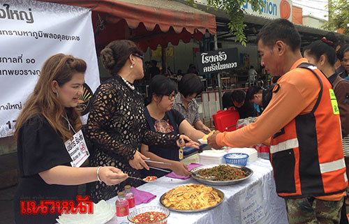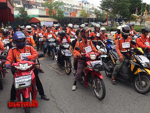 ด้านนายดำรงชัย ปานจุ้ยเจริญดี นายกสมาคมวิชาชีพผู้สื่อข่าวแห่งประเทศไทย กล่าวว่า วันนี้ตนรู้สึกดีใจเป็นอย่างมากที่รู้ว่า จะมีการรวมตัวกันของรถจักรยานยนต์รับจ้างในหมู่บ้านบางใหญ่ซิตี้ กว่า 130 คัน เพื่อบริการขับรถรับ-ส่ง ฟรี แก่ประชาชน ตนจึงนำอาหาร เครื่องดื่มและเสื้อยืดสีดำจำนวน 200 ตัว มาบริการแจกให้กับพี่น้องประชาชนที่ผ่านไป-มา ฟรี!! อีกทั้งยังเชิญชวนให้พี่น้องทุกๆท่านร่วมกันทำความดีถวายแด่ในหลวงในพระบรมโกศ ของพวกเราคนไทยทุกคน