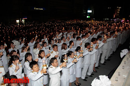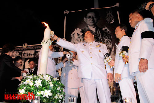 และที่หน้าเทศบาลนครพระนครศรีอยุธยา ว่าที่ร้อยตรีอภินันท์ เผือกผ่อง ปลัดจังหวัดพระนครศรีอยุธยา พร้อมด้วย ที่ร้อยตรีสมทรง สรรพโกศลกุล นายกเทศมนตรีนครพระนครศรีอยุธยา นายนพรัตน์ บุญจร ผู้พิพากษาหัวหน้าศาลจังหวัดพระนครศรีอยุธยา ผู้บริหารเทศบาลนครพระนครศรีอยุธยา ข้าราชการ นักเรียน นักศึกษา พ่อค้า ประชาชน ร่วมกันร้องเพลงสรรเสริญพระบารมี และจุดเทียน "รวมพลังแห่งความภักดี" เนื่องในโอกาสวันคล้ายวันพระบรมราชสมภพ "พระบาทสมเด็จพระปรมินทรมหาภูมิพลอดุลยเดช"