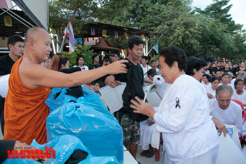 ส่วนที่วัดป้อมรามัญ ต.สวนพริก อ.พระนครศรีอยุธยา พระครูเกษมจันทวิมล(พระอาจารย์แดง) เจ้าอาวาสวัดป้อมรามัญ ได้จัดพิธีเทิดพระเกียรติเพื่อน้อมเกล้าน้อมกระหม่อมรำลึกในพระมหากรุณาธิคุณพระบาทสมเด็จพระปรมินทรมหาภูมิพลอดุลยเดช รัชกาลที่ 9 โดยผลิตเสื้อคอกลมสีดำแจกให้กับพุทธศาสนิกชนจำนวน 1,900 ตัว พร้อมด้วยปฏิทินพระบรมฉายาลักษณ์พระบาทสมเด็จพระปรมินทรมหาภูมิพลอดุลยเดช จำนวน 5,000 แผ่น ข้าวสารจำนวน509 ถุง และนำเพลงบทเพลง 13 ตุลาคม น้อมส่งเสด็จอีกจำนวน 3,00 แผ่น แจกให้