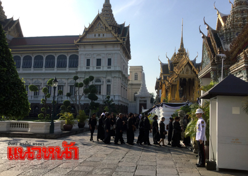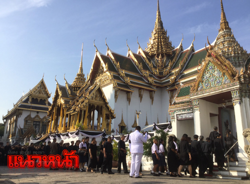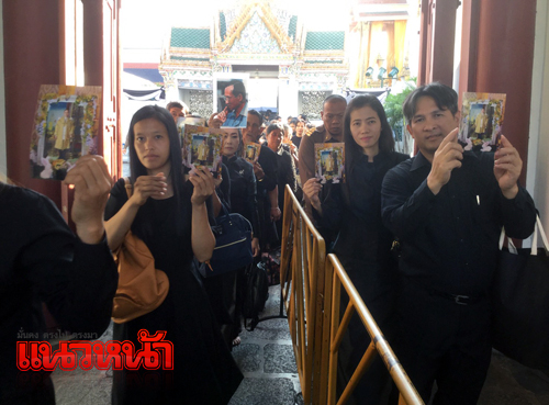 13 ธ.ค.59 ผู้สื่อข่าวรายงานบรรยากาศที่พระที่นั่งดุสิตมหาปราสาท ในพระบรมมหาราชวัง ว่า ประชาชนเดินทางมาเข้าคิวรอเพื่อเข้ากราบสักการะพระบรมศพพระบาทสมเด็จพระปรมินทรมหาภูมิพลอดุลยเดช เป็นจำนวนมากเหมือนเช่นทุกวัน โดยในวันนี้เจ้าหน้าที่ได้เปิดให้ประชาชนที่นั่งรถวีลแชร์เข้ากราบสักการะพระบรมศพเป็นชุดแรก ตั้งแต่เวลา 04.45 น.ตามด้วยเป็นประชาชนทั่วไป ในเวลา 04.50 น.โดยสำนักพระราชวังได้แจกภาพพระบรมฉายาลักษณ์พระบาทสมเด็จพระปรมินทรมหาภูมิพลอดุลยเดช พิมพ์ 4 สี ขนาด 5 คูณ 7 นิ้ว ที่ทรงพระกรุณาโปรดเกล้าฯ พระราชทานแก่พสกนิกรเพื่อนำกลับไปเป็นของที่ระลึก พร้อมแจกข้าว "พอเพียง" ซึ่งเป็นข้าวพันธุ์ดีได้นำกลับไปเป็นขวัญข้าวขยายเพาะปลูกต่อไป