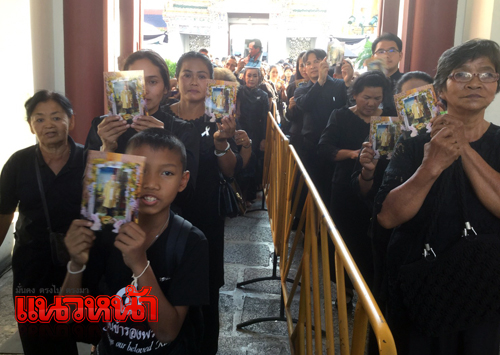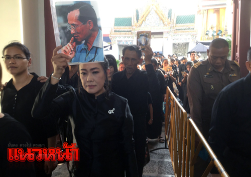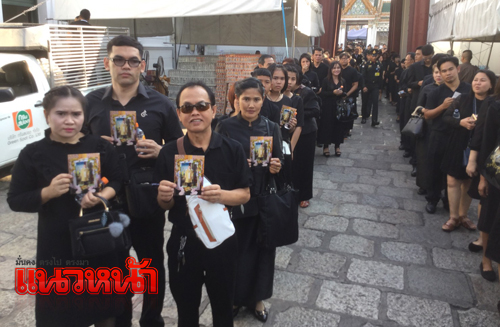 "แถวบ้านมีโครงการในพระราชดำริ มีศูนย์เรียนรู้ชาวนา มีพิพิธภัณฑ์ชาวนา เพื่อให้เกษตรกรได้เรียนรู้ ซึ่งพวกเราเกิดมาไม่ทันเห็นตอนที่ท่านลำบาก แต่ก็รับรู้ได้ว่าพระองค์ทรงงานหนักเพื่อให้ทุกคนสบาย พระองค์ไม่เคยร้องขอว่าให้ใครรักพระองค์ท่าน แต่ท่านอยากให้คนไทยรักกันแค่นี้ท่านก็มีความสุขแล้ว วันนี้ได้มากราบสักการะก็น้ำตาไหลเสียใจกลัวว่าสิ่งที่พวกเราตั้งใจทำจะสายเกินไปเพราะพระองค์ท่านไม่อยู่แล้ว แต่ก็เชื่อว่าพระองค์ทรงรับรู้ได้ในส่ิงที่พวกเราตั้งใจทำ" สามสาว กล่าวด้วยน้ำตาแห่งความอาลัย