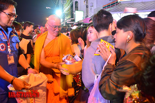โดยมีพุทธศาสนิกชนจำนวนนับหมื่นคน ต่างพร้อมใจกันนำข้าวสารอาหารแห้งและดอกไม้ธูปเทียนมารอทำบุญแก่พระอุปคุตและพระสงฆ์ ตลอดสองฝั่งถนนบรรพปราการ เป็นระยะทางยาวกว่า 1 กิโลเมตร ท่ามกลางสภาพอากาศที่เย็นสบาย อุณหภูมิ 17 องศาเซลเซียส ซึ่งทุกคนต่างน้อมจิตอธิษฐานถวายเป็นพระราชกุศลแด่พระบาทสมเด็จพระปรมิทรมหาภูมิพลอดุลยเดช ด้วยความสำนึกในพระมหากรุณาธิคุณ