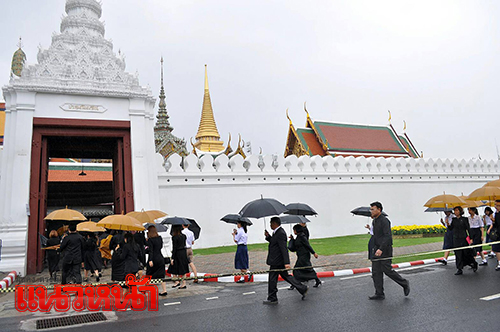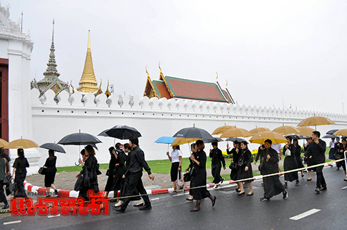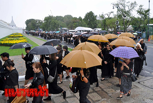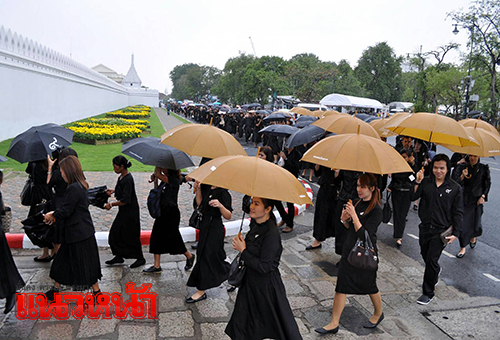 16 ธ.ค.59 ผู้สื่อข่าวรายงานว่า ในวันนี้เจ้าหน้าที่สำนักพระราชวัง ได้เปิดให้ประชาชนที่นั่งรถวิลแชร์เข้ากราบสักการะพระบรมศพเป็นชุดแรกใน เวลา 04.45 ตามด้วยประชาชนทั่วไป เวลา 04.50 ได้มีประชาชนจากทั่วทุกสารทิศของประเทศได้เดินทางมาเข้าคิวรอเพื่อกราบสักการะพระบรมศพพระบาทสมเด็จพระปรมินทรมหาภูมิพลอดุลยเดช บนพระที่นั่งดุสิตมหาปราสาท ในพระบรมมหาราชวัง กันอย่างเนืองแน่น โดยช่วงเช้าได้มีฝนโปรยปรายลงมา ประชาชนได้นำร่มที่เตรียมมากางกันฝนและยังคงพร้อมใจกันต่อแถวรอเข้ากราบสักการะพระบรมศพอย่างเป็นระเบียบโดยบริเวณด้านทิศตะวันออกของพระที่นั่งดุสิตมหาปราสาท เจ้าหน้าที่สำนักพระราชวังได้นำร่มขนาดใหญ่มากางให้บริการประชาชน