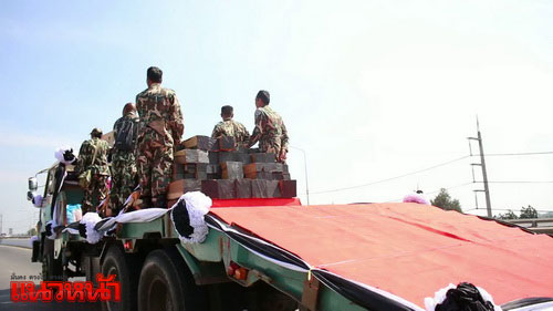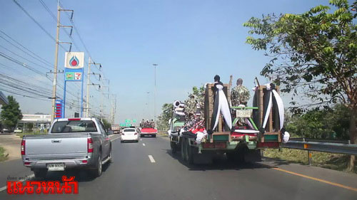 ขบวนรถบรรทุกไม้จันทน์หอมที่แปรรูป จากที่ทำการอุทยานแห่งชาติกุยบุรี ผ่านเข้าสู่จังหวัดราชบุรีแล้ว เดินทางมุ่งหน้าผ่านพระบรมราชานุสาวรีย์ รัชกาลที่ 1 เชิงเขาแก่นจันทร์ ไปตามถนนเพชรเกษม ก่อนจะเข้าสู่จังหวัดนครปฐม เมื่อเวลา 12.52 น. และระหว่างการเดินทางมีประชาชนมานั่งรอรับขบวนตามจุดต่างๆ