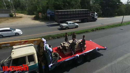 20 ธ.ค.59 ผู้สื่อข่าวรายงานว่า เมื่อเวลา 11.37 น.ขบวนรถบรรทุกไม้จันทน์หอมที่แปรรูปจำนวน 1,461 แผ่นเป็นขนาดต่างๆ จำนวน 3 คันซึ่งประดับตกแต่งอย่างสวยงาม ด้วยการผูกผ้าขาว ดำจับดอก และที่บริเวณพื้นของรถมีการปูด้วยพรหมสีแดง ซึ่งได้ทำการเคลื่อนย้ายออกจากที่ทำการอุทยานแห่งชาติกุยบุรี หมู่ 9 ตำบลหาดขาม อำเภอกุยบุรี จังหวัดประจวบคีรีขันธ์ นำโดยรถวิทยุตำรวจทางหลวง 3 คันประกอบด้วยรถเบิกทาง รถนำทาง และรถปิดท้ายขบวน เมื่อเวลา 06.59 น. และใช้เส้นทางผ่านสันเขื่อนอ่างเก็บน้ำยางชุม ในพระราชดำริ และมุ่งหน้าออกไปยังสามแยกบ้านหนองหมู และมุ่งหน้าออกสู่ถนนเพชรเกษม ผ่านอำเภอสามร้อยยอด อำเภอปราณบุรี และใช้เส้นทางถนนพายพาสปราณบุรี-ชะอำ และมุ่งหน้าต่ออำเภอท่ายาง