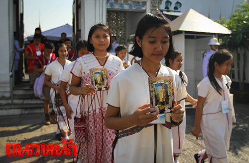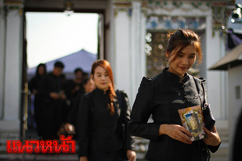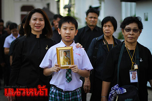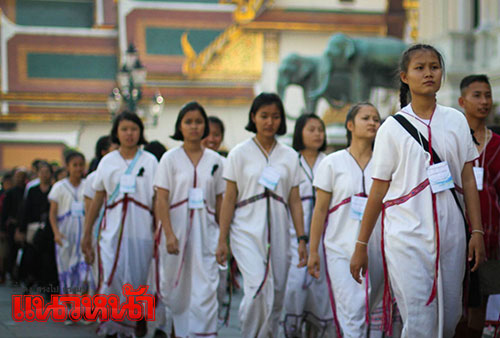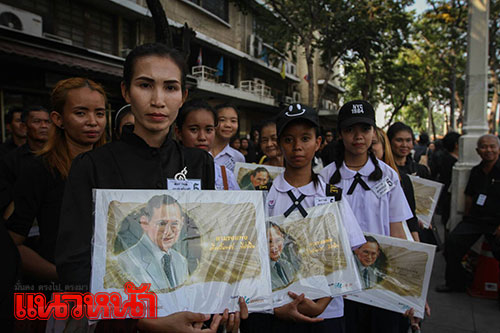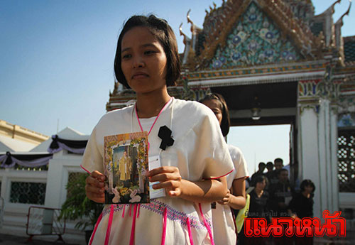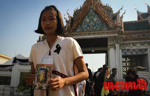 21 ธ.ค.59 บรรยากาศพสกนิกรชาวไทยและนักเรียนจากโรงเรียนบ้านไร่วิทยา จ.แม่ฮ่องสอน ในชุดประจำท้องถิ่น เดินทางเข้าถวายบังคมพระบรมศพ พระบาทสมเด็จพระปรมินทรมหาภูมิพลอดุลยเดช เบื้องหน้าพระบรมโกศ บนพระที่นั่งดุสิตมหาปราสาท ในพระบรมมหาราชวัง