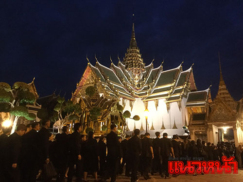 22 ธ.ค.59 ผู้สื่อข่าวรายงาน เจ้าหน้าที่สำนักพระราชวัง ได้เปิดให้ประชาชนเข้ากราบถวายบังคมพระบรมศพ พระบาทสมเด็จพระปรมินทรมหาภูมิพลอดุลยเดช บนพระที่นั่งดุสิตมหาปราสาท ในพระบรมมหาราชวัง ตั้งแต่เวลา 04.45 น. เพื่อให้ผู้สูงอายุและผู้ที่นั่งบนรถวีลแชร์ทยอยเข้าเป็นกลุ่มแรก และในเวลา 04.50 น. เป็นประชาชนทั่วไปที่เดินทางมาเข้าแถวรอตั้งแต่เช้ามืดเพื่อเข้ากราบถวายบังคมพระบรมศพในหลวงรัชกาลที่ 9 ด้วยความอาลัยและสำนึกในพระมหากรุณาธิคุณที่ทรงมีต่อพสกนิกรชาวไทยตลอดมา