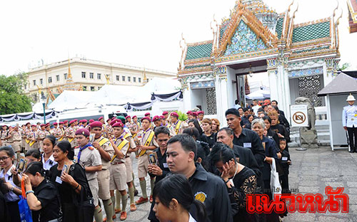 นายก่อเกียรติ พานพรม อายุ 15 ปี และนายสุวัชชัย วัฒนวิทย์ อายุ 15 ปี ลูกเสือที่เดินทางมาในวันนี้เปิดเผยว่า ตนรู้สึกปลาบปลื้มที่ได้มีโอกาสเข้าถวายบังคมพระบรมศพ และภูมิใจที่ได้สวมชุดลูกเสือที่มีพระบาทสมเด็จพระปรมินทรมหาภูมิพลอดุลยเดช เป็นองค์ประธาน และตนก็เคยเห็นพระองค์ทรงเครื่องแบบลูกเสือ รู้สึกถึงความสง่างาม ตนมีความประทับใจในหลวง ร.9 ในทุกเรื่อง ทรงช่วยเหลือให้ประชาชนสามารถเลี้ยงตัวเองได้ โดยอนาคตอยากทำงานด้านการพัฒนาคนให้เป็นคนดีต่อไปด้วย