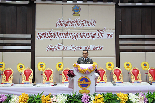 24 ธ.ค. 59 ที่กองบัญชาการตำรวจนครบาล (บช.น.) พล.ต.อ.จักรทิพย์ ชัยจินดา ผบ.ตร. เป็นประธานในพิธีวันคล้ายวันสถาปณาครบรอบ 94 ปี กองบัญชาการตำรวจนครบาล โดยมี อดีต ผบช.น. พล.ต.ท.ศานิตย์ มหถาวร ผบช.น. รอง ผบช.น.ทุกนาย ผบก.น.1-9 ผบก.สปพ. ผบก.จร. ชมรมแม่บ้านตำรวจ และบรรดาข้าราชการตำรวจ สังกัดบช.น. ร่วมวางพานพุ่มสักการะพระอนุสาวรีย์กรมพระยานเรศวรฤทธิ์ เสนาบดีกระทรวงนครบาลพระองค์แรก พร้อมวางพวงมาลาอนุสาวรีย์ผู้พิทักษ์รับใช้ประชาชน ก่อนรับความเคารพจากกองเกียรติยศ จากนั้นมีการถ่ายรูปหมู่เป็นที่ระลึกของผู้บังคับบัญชาระสูง ซึ่งนางสาวจิตภัสร์ กฤดากร หรือตั๊น ได้เดินทางมาร่วมมอบของที่ระลึกแก่ พล.ต.ท.ศานิตย์ ก่อนจะมีพิธีสงฆ์ และพิธีมอบโล่ ทุนการศึกษา ณ ห้องประชุมใหญ่ บช.น.