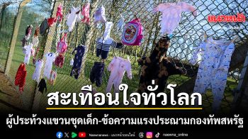 ผู้คนทั่วโลกไม่ทน! ประท้วงต้านสงครามอิหร่าน แขวนชุดเด็ก-ข้อความประณามกองทัพสหรัฐฯ