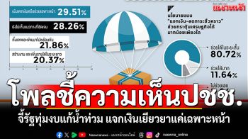 โพลชี้คนไทยมอง'รัฐบาลอนุทิน' แจกเงินเยียวยาเฉพาะหน้า จี้ทุ่มงบแก้น้ำท่วมระยะยาว