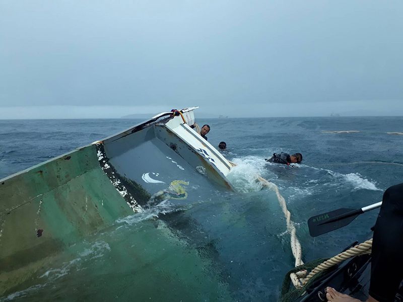 เรือเอก นิตินันท์ เปิดเผยว่า จากการดำน้ำลงสำรวจตัวเรือประมงที่จมพบว่า มีรอยถูกชนขนาดใหญ่ระดับแนวน้ำจนเรือพลิกคว่ำลงทันที ลูกเรือที่เสียชีวิต 4 คนติดอยู่ตามเก๋งเรือ ติดอวน และในห้องเครื่องโดยไม่รู้ตัว จึงไม่สามารถหนีออกได้ทันทำให้เสียชีวิตดังกล่าว สภาพเรือที่จมอยู่ในแนวดิ่งหัวเรือโผล่พ้นน้ำประมาณ 1 เมตร จากโฟมที่ถูกอัดไว้บริเวณหัวเรือ ตัวเรือยาว 18 เมตร ดำน้ำลงไปเห็นพื้นดินเพียงลางๆ ระดับน้ำบริเวณดังกล่าวน่าจะลึกประมาณ 20-25 เมตร ล่าสุดได้ผูกมัดเรือเรียบร้อยแล้ว โดยให้เรือประมง 5 ลำ ช่วยกันลากเข้าฝั่งใช้ความเร็วได้เพียง 1 น๊อต คาดว่าต้องใช้เวลาประมาณ 6-7 ชม. จึงจะสามารถลากเรือเข้าฝั่งที่ ต.แสมสาร อ.สัตหีบ ได้เรียบร้อย