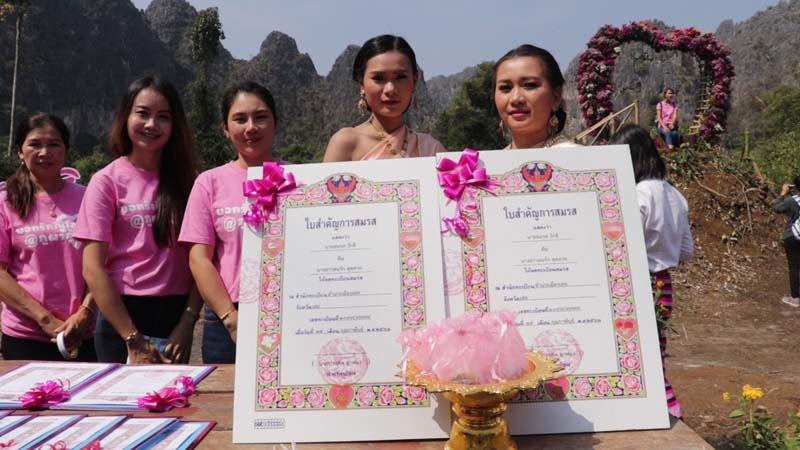 วันวาเลนไทน์ อ.เมืองเลยร่วมกับเทศบาลตำบลน้ำสวยได้จัดพีธีแต่งงานพร้อมกับมอบทะเบียนสมรสไม่เสียค่าใช้จ่ายในการแต่งงานแต่อย่างใด โดยมีนายชัยวัฒน์ชื่นโกสุม ผู้ว่าราชการจังหวัดเลยเป็นผู้มอบทะเบียนสมรสและของที่ระลึก ท่ามกลางบรรยากาศธรรมชาติแห่งขุนเขาที่สลับซับซ้อน สายน้ำ สายหมอกและมวลดอกไม้แสนโรแมนติก โดยใช้ชื่องาน“บอกรักให้โลกรู้ที่ภูผาล้อม ได้มีคู่บ่าวสาว 14 คู่รัก ร่วมเข้ากิจกรรม