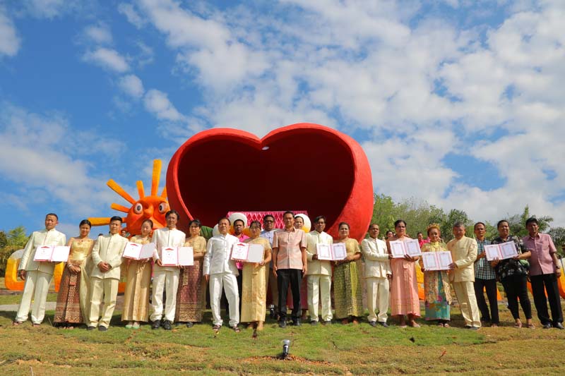 ที่แสงตะวัน ซาฟารี ต.ท่าอยู่ อ.ตะกั่วทุ่ง จ.พังงา นายบัญชา ธนูอินทร์ นายอำเภอตะกั่วทุ่ง พร้อมด้วย นายณรงค์ แสงคง กำนันตำบลท่าอยู่ นำ 8 คู่รัก ซึ่งมีทั้งคู่รักชาวไทยและชาวจีน ขึ้นหลังช้าง พร้อมตั้งขบวนแห่ ที่ประกอบด้วยขบวนกลองยาว ขบวนแห่ขันหมาก ที่ชาวอำเภอตะกั่วทุ่งพร้อมใจกันแต่งชุดพื้นเมืองประจำถิ่นอย่างสวยงาม เข้าร่วมงานเพื่อเป็นเกียรติให้คู่รักที่เดินทางมาร่วมจดทะเบียนสมรสในวันแห่งความรัก ในกิจกรรมชื่อ “วิวาห์บนหลังช้าง กลางแสงตะวัน @แสงตะวันซาฟารี”ก่อนจะลงจากช้างเดินเท้าขึ้นไปจดทะเบียนสมรสในซุ้มหัวใจสีแดงขนาดใหญ่บนเนินเขา ซึ่งมีการตกแต่งพื้นที่ไว้อย่างสวยงาม สร้างรอยยิ้มให้กับคู่รักและผู้ร่วมงานเป็นอย่าง โดย 8 คู่รัก เป็นชาวไทย 4 คู่ และชาวจีน 4 คู่