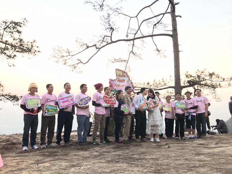 14 ก.พ.61 ที่จุดบริการนักท่องเที่ยวจุดวังกวางบรรยากาศเป็นไปอย่างคึกคักนักท่องเที่ยวที่ต่างเดินขึ้นไปสัมผัสอากาศหนาวบนยอดภูและขึ้นมาพิสูจน์รักแท้พร้อมกับจดทะเบียนสมรส ในวันวาเลนไทน์โดยปีนี้ มีคู่รักเดินทางขึ้นมาจดทะเบียนบนยอดภูถึง 14 คู่รักและเดินทางมารำรึกอีก 2 คู่ โดย คู่รักต่างพากันออกไปชมพระอาทิตย์ขึ้นที่ผานกแอ่นพร้อมทำบุญตักบาตรไหว้พระขอพรพร้อมพิธีบายศรีสู่ขวัญแล้วเข สู่พิธีจดทะเบียนสมรสซึ่งในปี คู่ร่วมพิสูจน์รักบนความสูง 1,288 เมตร ท่ามกลางอากาศหนาวยอดภูกระดึง 7 องศาเซลเซียส