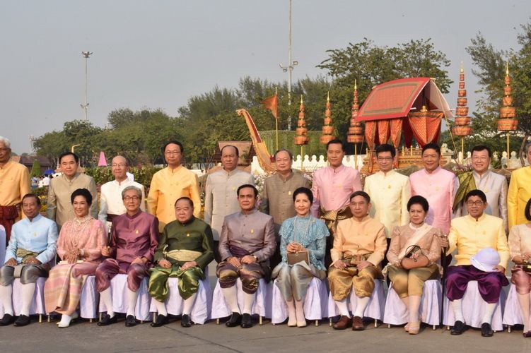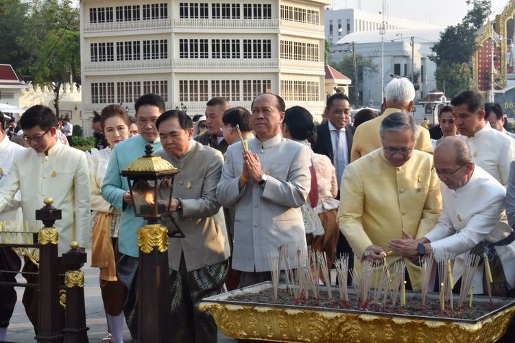 นายกรัฐมนตรี และคณะรัฐมนตรี วางพวงมาลัยถวายสักการะพระบรมราชานุสรณ์พระบาทสมเด็จพระจุลจอมเกล้าเจ้าอยู่หัว จากนั้น คณะรัฐมนตรี พร้อมคู่สมรสได้ร่วมถ่ายภาพหมู่ ที่หน้าพระลานพระราชวังดุสิต ก่อนนำคณะเดินเข้าเยี่ยมชมนิทรรศการ "สยามประชารำฦก" ซึ่งประกอบด้วยนิทรรศการสภาอุณาโลมแดงแห่งชาติสยาม และนิทรรศการประปากรุงเทพ ซึ่งเป็นการจัดแสดงให้เห็นถึงพระมหากรุณาธิคุณของ รัชกาลที่ 5 ในการที่จะทำให้ประชาชนมีความเป็นอยู่ที่ดีขึ้น มีสาธารณูปโภคที่ทันสมัยเทียมอารยประเทศตะวันตก เยี่ยมชมนิทรรศการภาพถ่าย ความประทับใจในงานพระราชพิธีถวายพระเพลิงพระบรมศพ พระบาทสมเด็จพระปรมินทรมหาภูมิพลอดุลยเดช บรมนาถบพิตร ที่ประชาชนได้บันทึกไว้และส่งเข้ามาเพื่อคัดเลือกจำนวน 1,700 ภาพ และนำมาจัดแสดง แบ่งเป็น 3 ชุดๆ 159 ภาพ ชุดละ 10 วัน โดยเปิดโอกาสให้ผู้เที่ยวชมงานลงคะแนนภาพที่ตนประทับใจ การนี้ นายกฯได้โหวดลงคะแนนให้ภาพที่ 28 ด้วย
