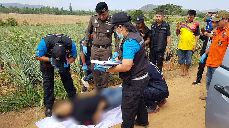 7 มี.ค.61 ร.ต.อ.จักรกฤษ ขาวเงิน ร้อยเวร สภ.แก่งกระจาน จ.เพชรบุรี รับแจ้งพบศพผู้เสียชีวิตที่บริเวณไร่สับปะรด หลังโรงเรียนบ้านเขากลิ้ง หมู่ 2 ต.แก่งกระจาน อ.แก่งกระจาน จึงรุดไปตรวจสอบพร้อมด้วยเจ้าหน้าที่พิสูจน์หลักฐานจังหวัดเพชรบุรี และเจ้าหน้าที่มูลนิธิสว่างสรรเพชญธรรมสถาน