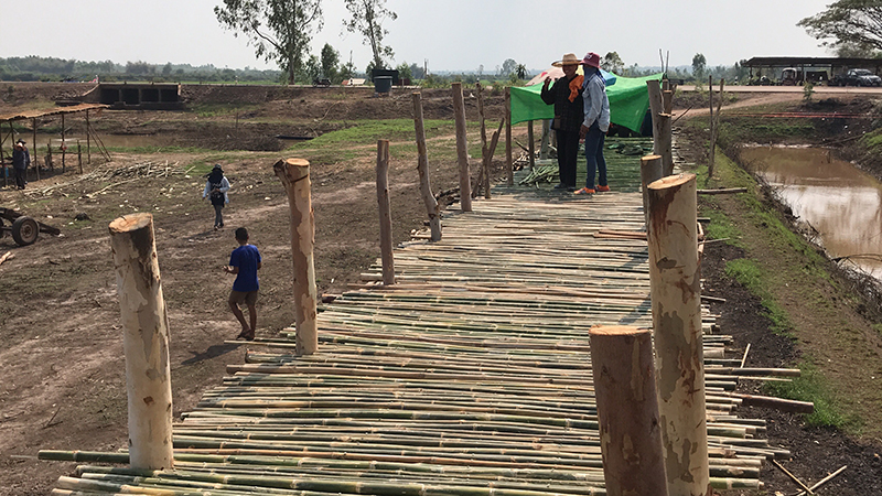 นายณัฎฐษ์กร กุลเดชศิริวัฒน์ แกนนำชาวบ้านที่คิดสร้างสะพานไม้ไผ่แห่งศรัทธาแห่งนี้ บอกว่า ชาวบ้านในหมู่บ้านส่วนใหญ่ประกอบอาชีพทางการเกษตร ในช่วงฤดูแล้งจะว่างจากการทำนา จึงได้มารวมตัวกันสร้างแหล่งท่องเที่ยวชุมชน เนื่องจากเส้นทางที่ผ่านชุมชน เป็นเส้นทางท่องเที่ยวระหว่างคำชะโนด จ.อุดรฯ ไปวัดไทย อ.โพนพิสัย จ.หนองคาย ถือเป็นเส้นทางสายพญานาคที่การเชื่อมต่อถึงกัน ทางชุมชนจึงได้มองเห็นโอกาสตรงนี้ที่จะสร้างแหล่งท่องเที่ยว ประกอบกับชุมชนเองก็มีตำนานเกี่ยวกับพญานาค คือปู่แสง เป็นความเชื่อเดิมอยู่แล้ว พื้นที่ในการก่อสร้างเป็นพื้นที่สาธารณะ ปัจจุบันเป็นพื้นที่สำคัญในการอนุรักษ์พันธุ์สัตว์น้ำ จุดเด่นคือมีธรรมชาติที่บริสุทธิ์ ในอนาคตทางชุมชนก็จะมีการขยายพันธุ์ต้นเบ็ง ที่เป็นพืชน้ำที่อยู่อาศัยของสัตว์น้ำ ให้เป็นโซนในการอนุรักษ์ที่สมบูรณ์แบบ