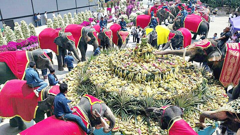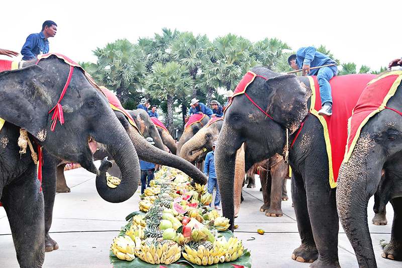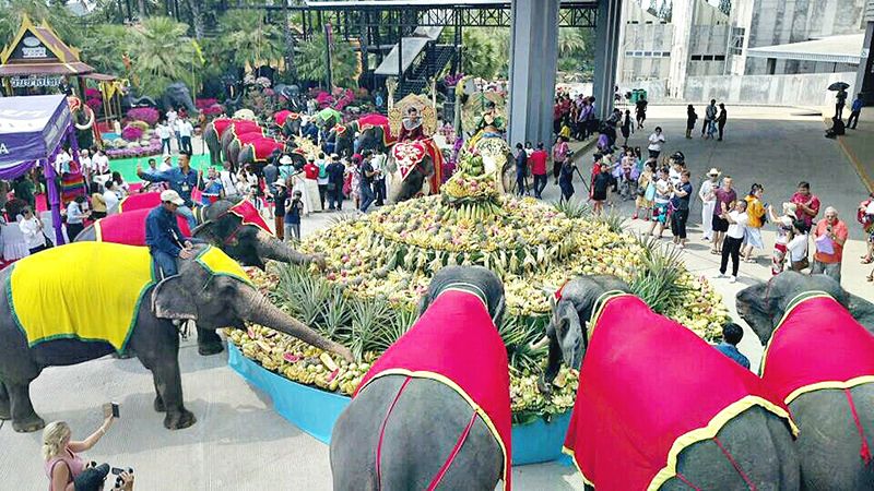 โดยบรรยากาศภายในงาน ได้มีขบวน ยอยศคชสาร สืบตำนานช้างไทย การแสดงชุดรำบายศรี พิธีฮ้องขวัญช้าง (ทำขวัญช้าง) โดยหมอฮ้องขวัญช้าง และเปิดโต๊ะจีนผลไม้ที่ใหญ่ที่สุดในประเทศ เส้นผ่าศูนย์กลาง 18 เมตร น้ำหนักผลไม้รวมกัน 2 ตัน สร้างความตื่นตาตื่นใจให้กับนักท่องเที่ยวเป็นอย่างมาก