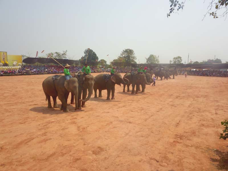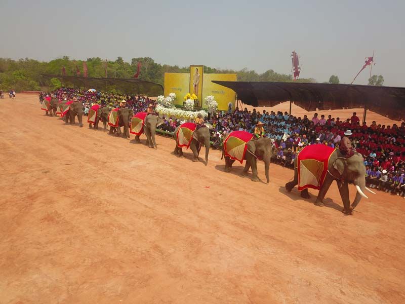 ผู้สื่อข่าวรายงานบรรยากาศที่บริเวณลานแสดงช้างในโครงการโลกของช้าง (Elephant World) ของ องค์การบริหารส่วนจังหวัดสุรินทร์ ภายในศูนย์คชศึกษา หมู่บ้านช้าง บ้านตากลาง ต.กระโพ อ.ท่าตูม จ.สุรินทร์ นายอรรถพร สิงหวิชัย ผู้ว่าราชการจังหวัดสุรินทร์ ได้ทำการลั่นฆ้องเปิดงาน “วันช้างไทย” เพื่อเชิดชูเกียรติและประกาศเกียรติภูมิช้างไทย จัดขึ้นโดย อบจ.สุรินทร์ มีการแสดงที่สร้างสีสัน คือ “ตำบอลช้าง” หรือ“โปโลช้าง”