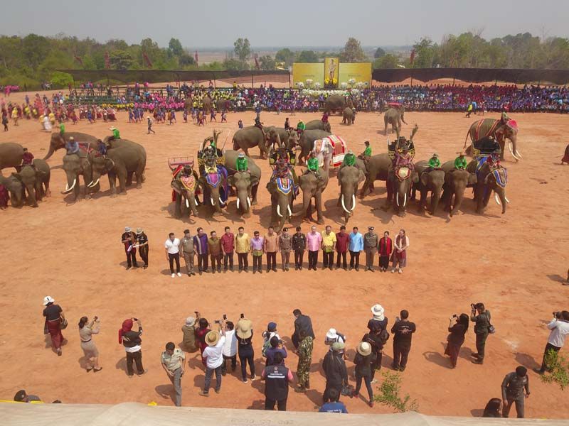 จากนั้นได้มีการเลี้ยงอาหารช้าง โดยโต๊ะจีนช้างที่ยาวถึง 200 เมตร มีช้างร่วมกว่า 100 เชือกที่อยู่ในโครงการนำช้างคืนถิ่นเพื่อพัฒนาสุรินทร์ บ้านเกิดของ อบจ.สุรินทร์ มาร่วมกินผลไม้ เช่น แตงโม สับปะรด กล้วย มันแกว อย่างเอร็ดอร่อย โดยมีประชาชนและนักท่องเที่ยวมาร่วมเลี้ยงอาหารช้างอย่างคึกคัก ท่ามกลางความประทับใจของประชาชนและนักท่องเที่ยวเป็นจำนวนมาก