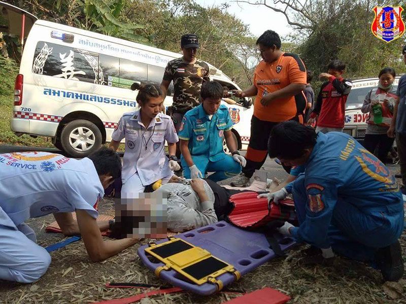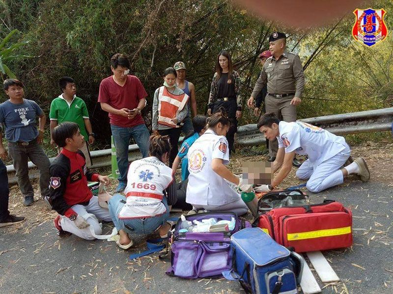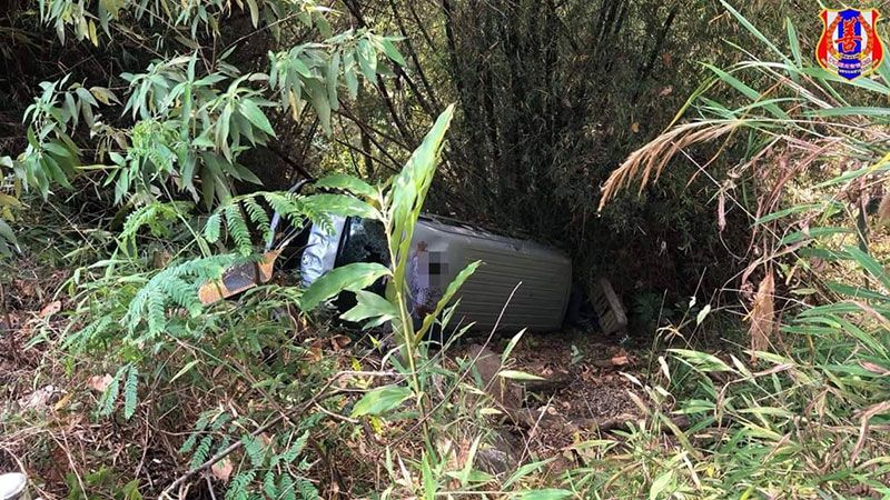 โดยเวลาต่อมาเจ้าหน้าที่ตรวจสอบพบรถยนต์ตู้โตโยต้า ป้ายทะเบียน 36-0087 ตกลงไปข้างลึกประมาณ 2 เมตร โชคดีที่ตัวรถติดกอไผ่ขนาดใหญ่ จึงไม่ตกลงไปในเหวลึก จึงได้ช่วยผู้บาดเจ็บพร้อมนำส่งโรงพยาบาลแม่จันอย่างเร่งด่วน
