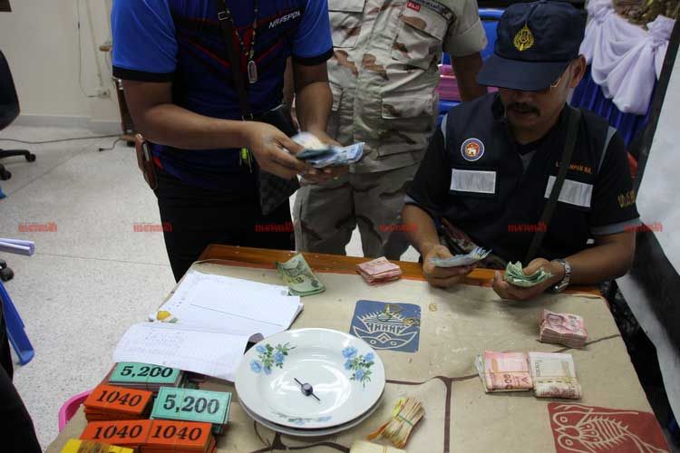 27 มี.ค.61 นายสิทธิชัย ศักดา ผู้ว่าราชการจังหวัดพังงา สั่งการให้ นายมานิต เพียรทอง ปลัดจังหวัดพังงา พร้อมด้วย นายสราวุฒิ ธนาเจริญสกุล นายอำเภอตะกั่วป่า นำเจ้าหน้าที่ทหาร ฝ่ายปกครอง กำลังเจ้าหน้าที่ อส.กองร้อยจังหวัดพังงา อส.กองร้อยอำเภอทับปุด อส.กองร้อยตะกั่วทุ่ง และ อส.กองร้อยอำเภอตะกั่วป่า ทำการขยายผลการจากการจับกุมบ่อนการพนันกุ้งปลา(โปปั่น) ทราบว่ามีการลักลอบเล่นการพนันกุ้งปลา (โปปั่น) ในพื้นที่ตะกั่วป่า จึงนำกำลังเข้าตรวจสอบพร้อมจับกุม บ่อนขนาดใหญ่ บริเวณสวนปาล์มน้ำมันไม่ทราบเจ้าของ ต.ตะกั่วป่า อ.ตะกั่วป่า จ.พังงา พบมีการกลางเต็นท์ภายในสวนปาล์มน้ำมัน มีบุคคลทั้งชายและหญิง กำลังเล่นการพนันอย่างสนุกสนาน จึงเข้าแสดงตัวขณะเดียวกันกับนักพนันกว่า 50 คน เห็นเจ้าหน้าที่จึงตกใจและวิ่งหลบหนีกันจนชุลมุน บางรายวิ่งหลบหนีสะดุดหลุมข้อเท้าแพลงจนต้องให้เจ้าหน้าที่ประคองเพื่อทำการจับกุมและสอบสวน